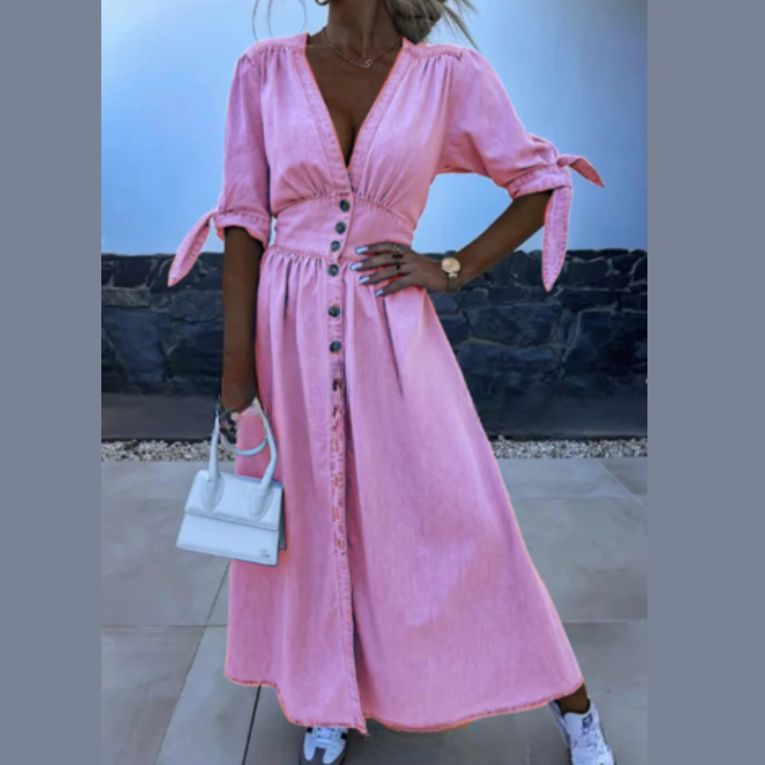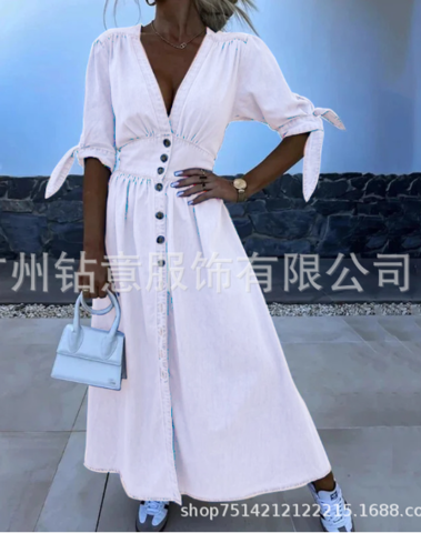 Damen Kurzarm Jeanskleid Mit Knöpfen