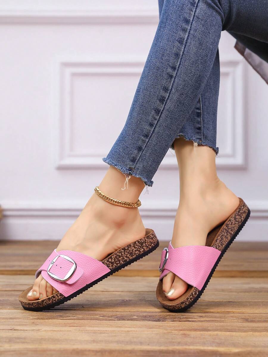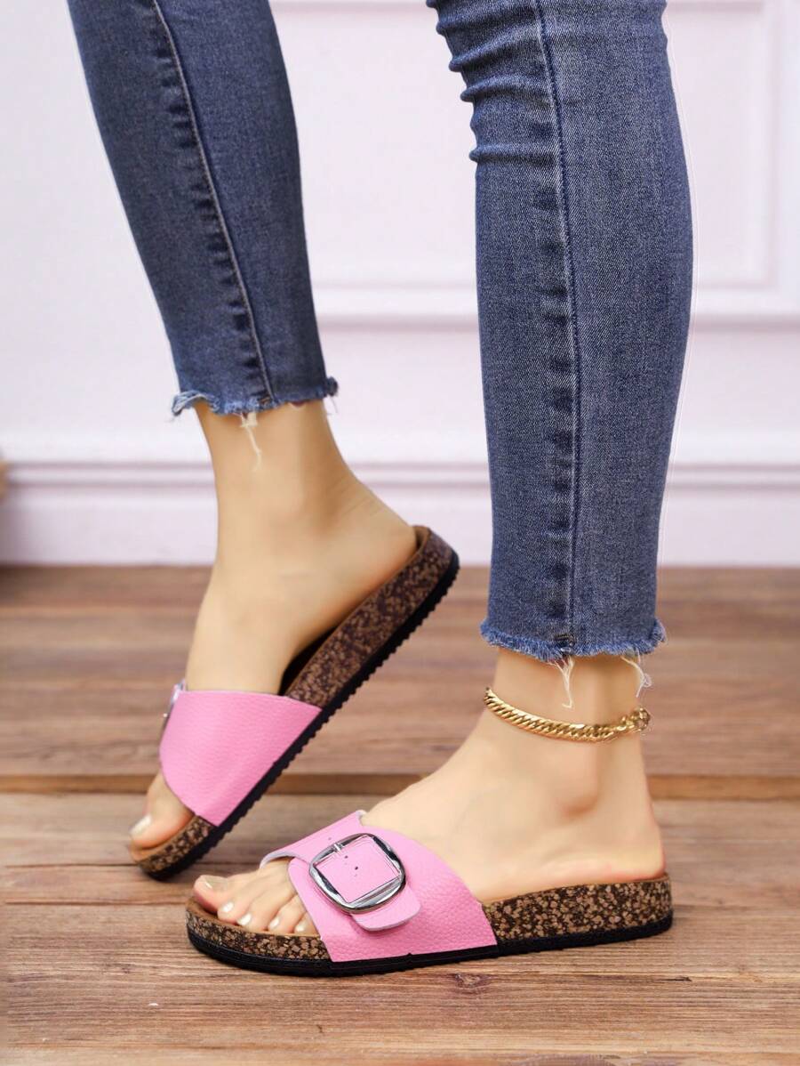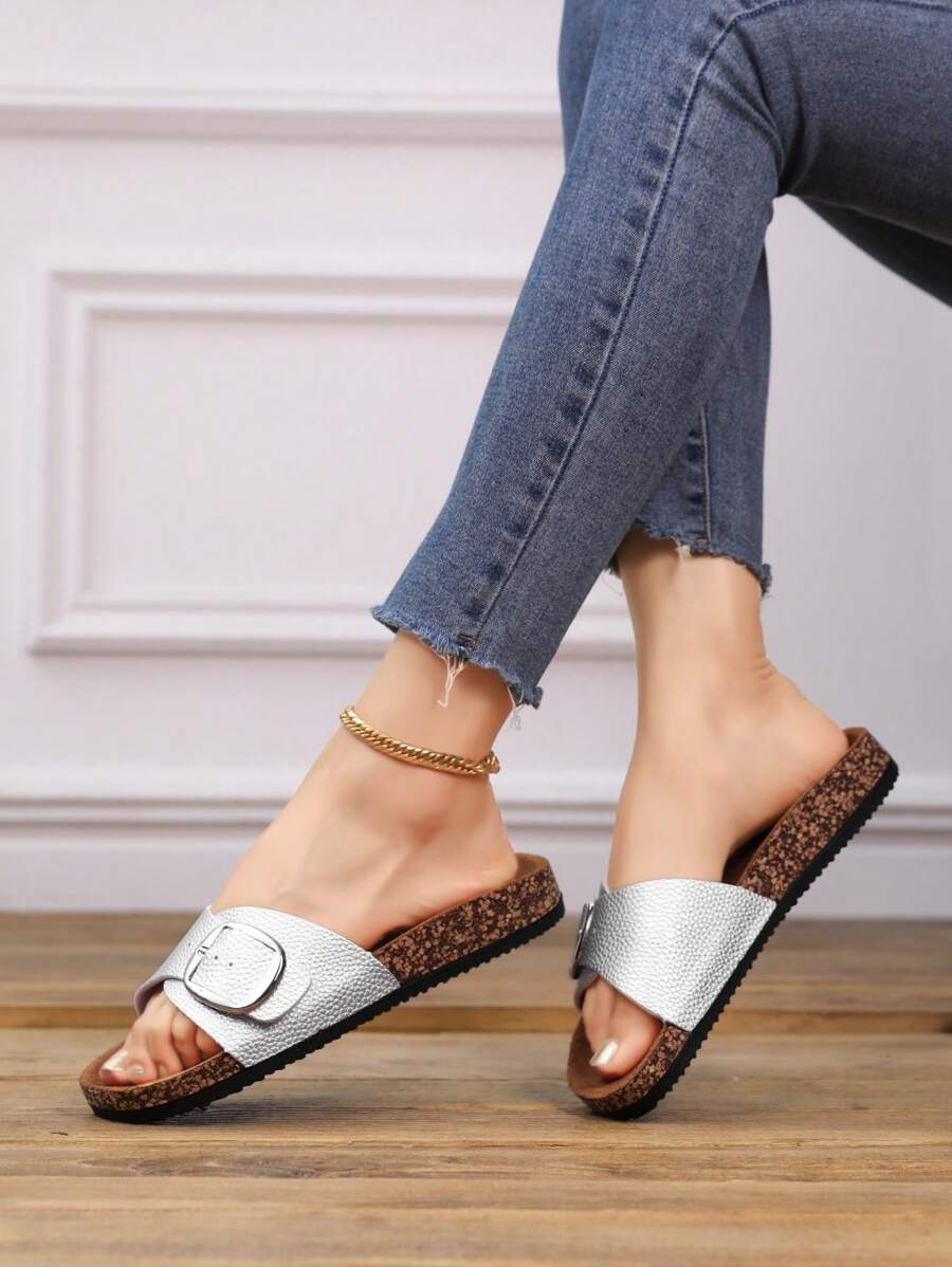 Diese flachen Outdoor-Slipper für Damen sind der ideale Begleiter für sonnige Tage – ob im Garten, am Strand oder unterwegs. Die verstellbare Schnalle bietet eine sichere Passform und setzt zugleich ein stilvolles Highlight. Das weiche, korkähnliche Fußbett passt sich sanft deinem Fuß an und sorgt für angenehmes Gehen den ganzen Tag über. Dank des leichten und atmungsaktiven Designs bleiben deine Füße stets kühl und entspannt. Die praktische Schlupfform macht das An- und Ausziehen einfach und schnell. Diese Slipper bieten dir Komfort, Funktionalität und sommerlichen Stil in einem.