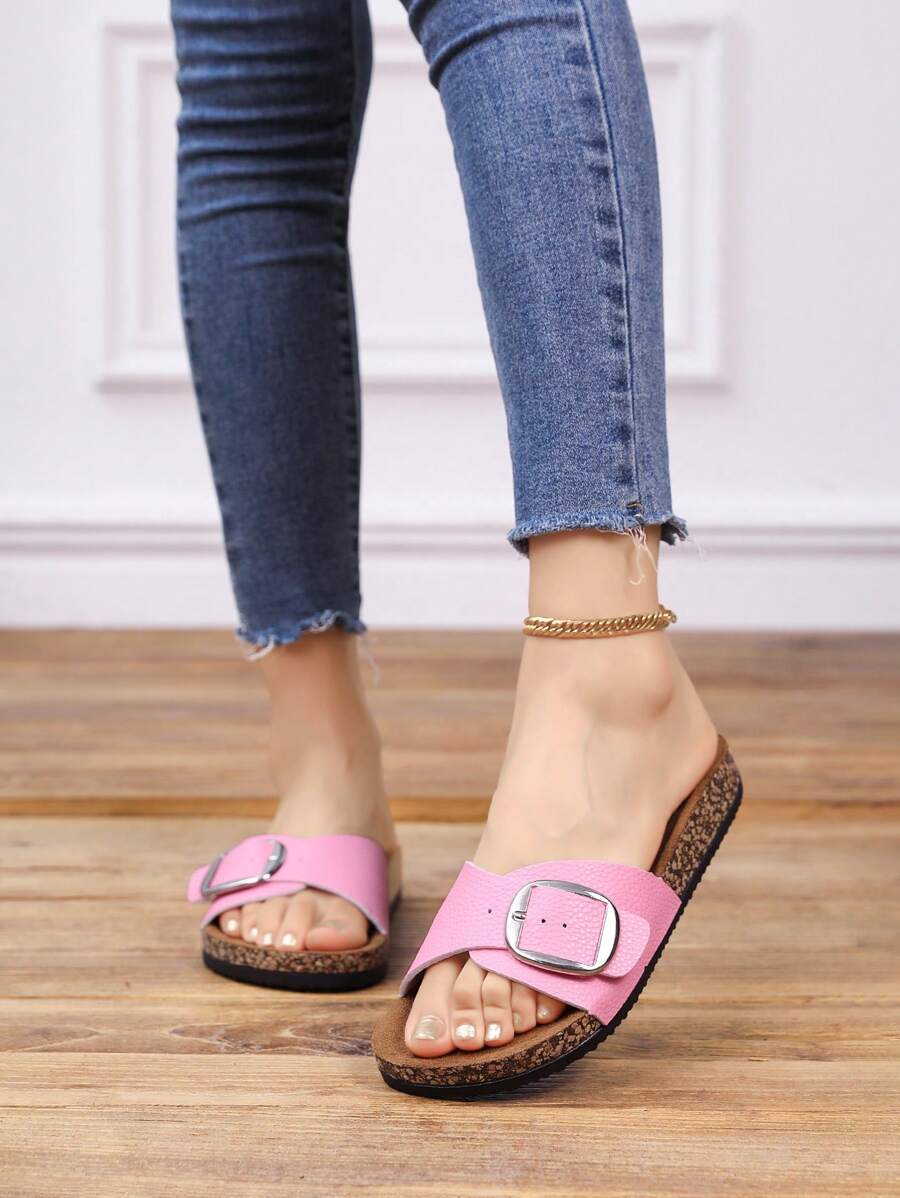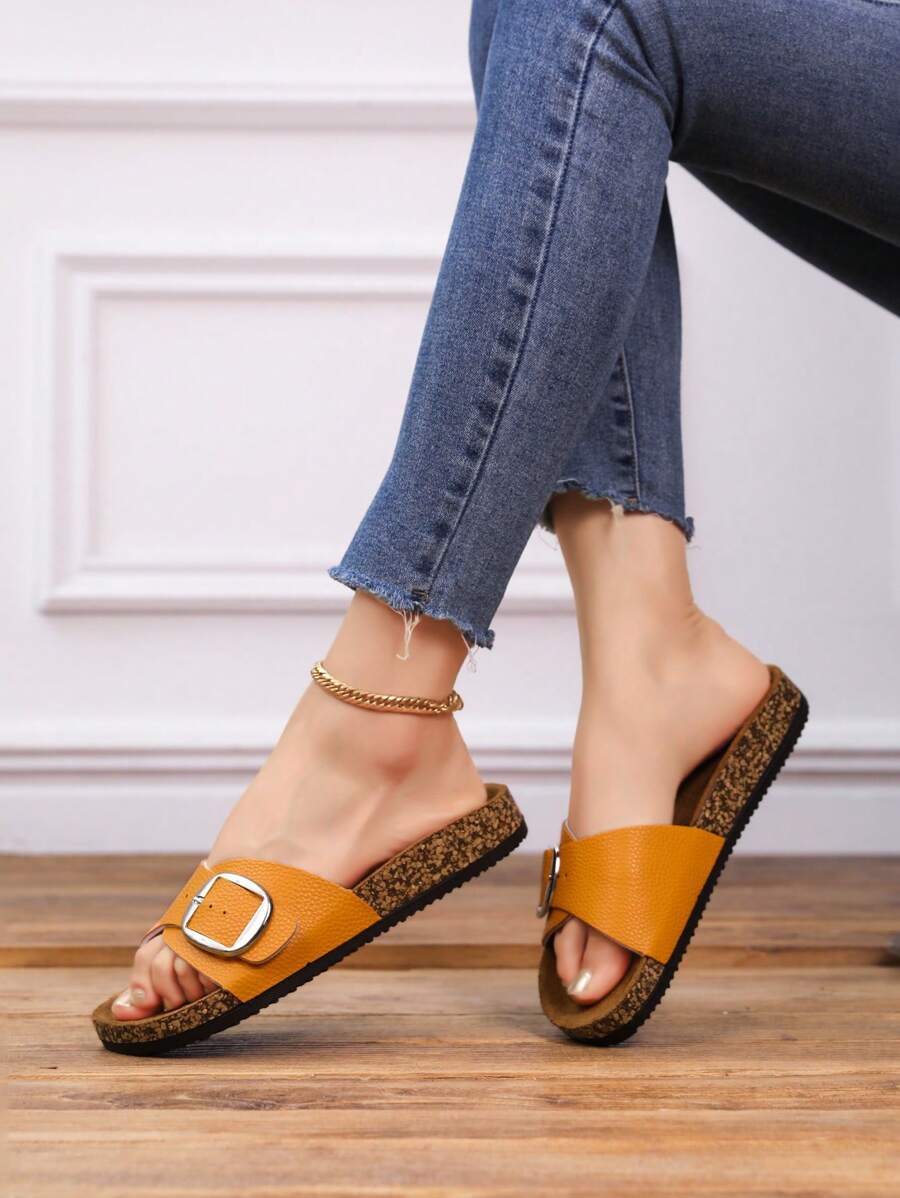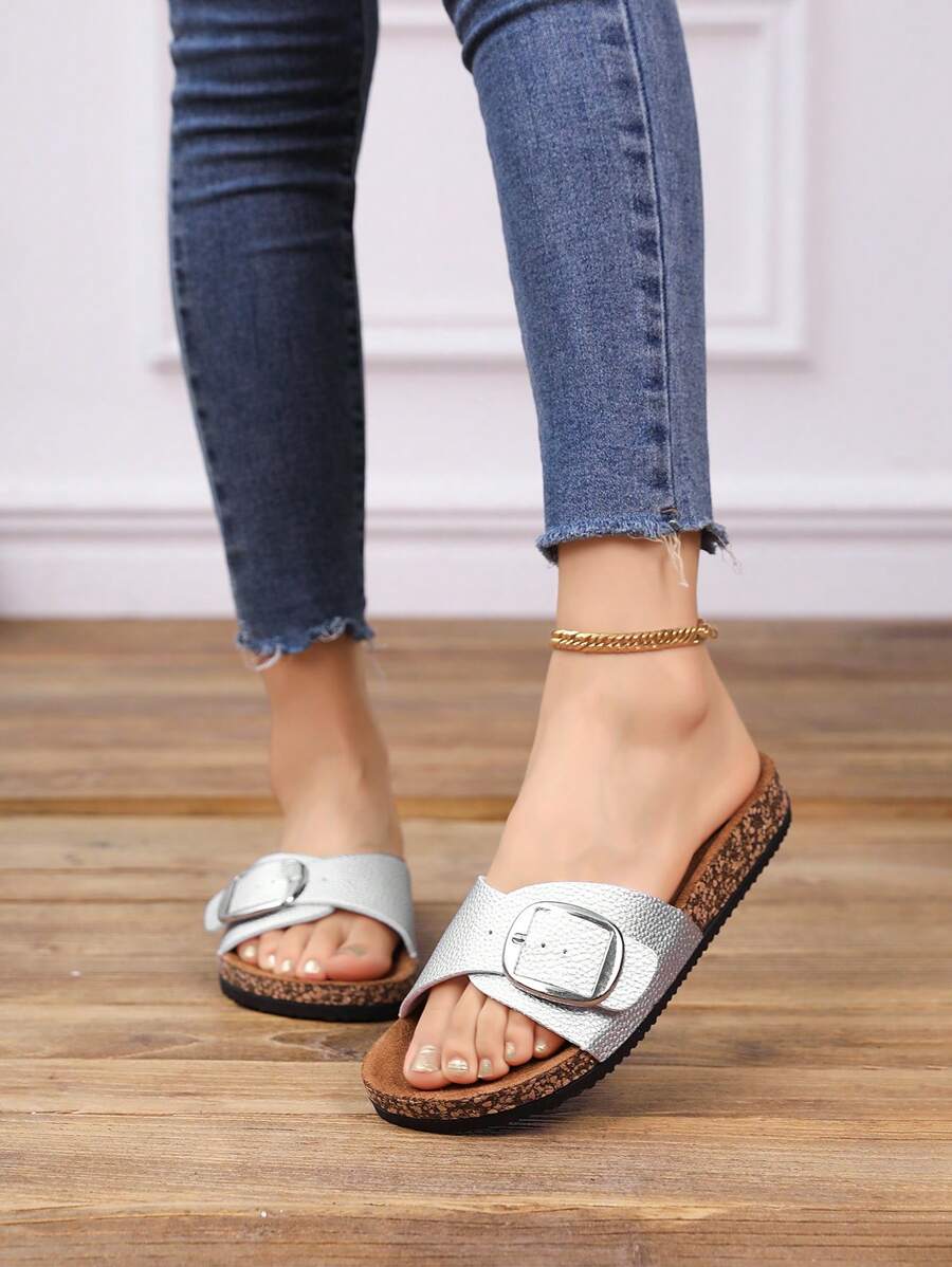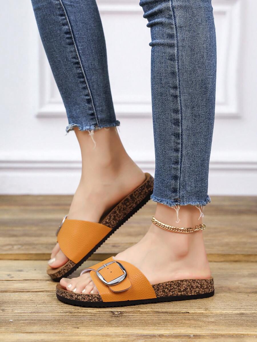 Diese flachen Outdoor-Slipper für Damen sind der ideale Begleiter für sonnige Tage – ob im Garten, am Strand oder unterwegs. Die verstellbare Schnalle bietet eine sichere Passform und setzt zugleich ein stilvolles Highlight. Das weiche, korkähnliche Fußbett passt sich sanft deinem Fuß an und sorgt für angenehmes Gehen den ganzen Tag über. Dank des leichten und atmungsaktiven Designs bleiben deine Füße stets kühl und entspannt. Die praktische Schlupfform macht das An- und Ausziehen einfach und schnell. Diese Slipper bieten dir Komfort, Funktionalität und sommerlichen Stil in einem.