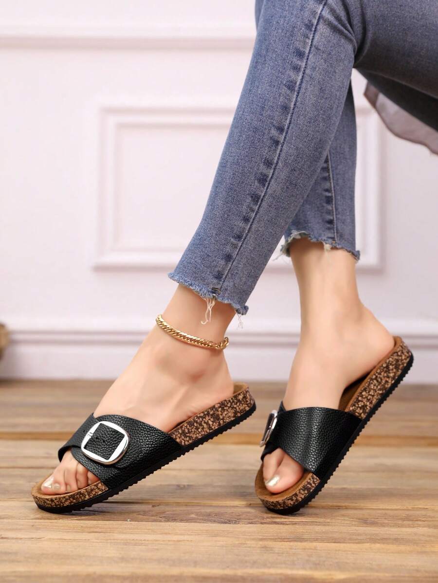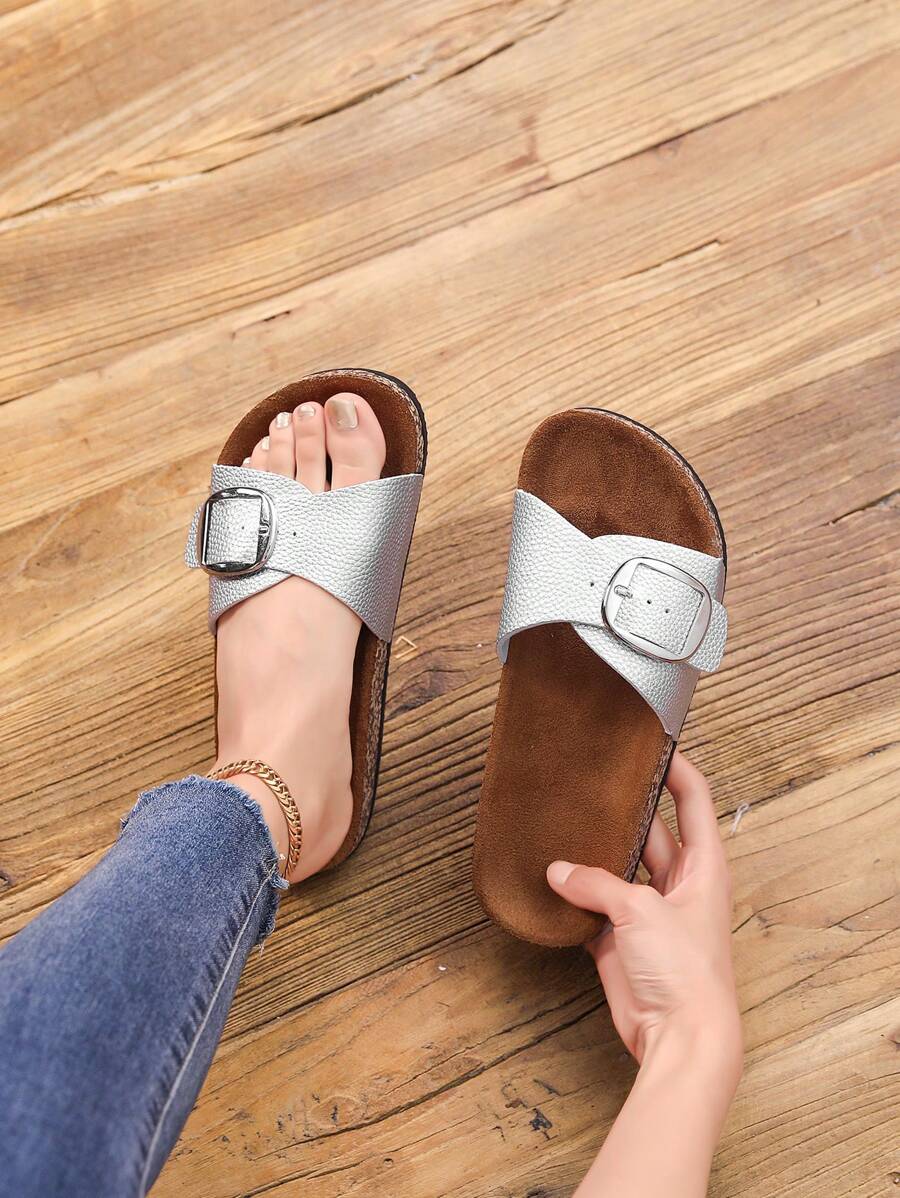 Damen Flache Outdoor Hausschuhe Mit Schnalle